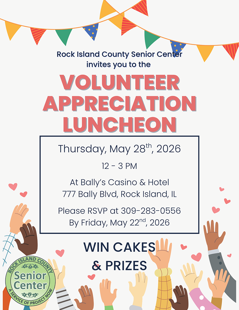 Serving as a county-wide Community Focal Point for seniors, and an Aging and Disability Resource Center, the Rock Island County Senior Center offers a variety of services for persons aged 60 and over and anyone over 18 with a disability. Any adult may access Information & Assistance to understand what community services may be available to meet their needs at our agency and receive referrals and follow-up assistance to access services they need. These services are funded primarily by the Western Illinois Area Agency on Aging (WIAAA) and are designed to help seniors live independently in their own homes. Services include: